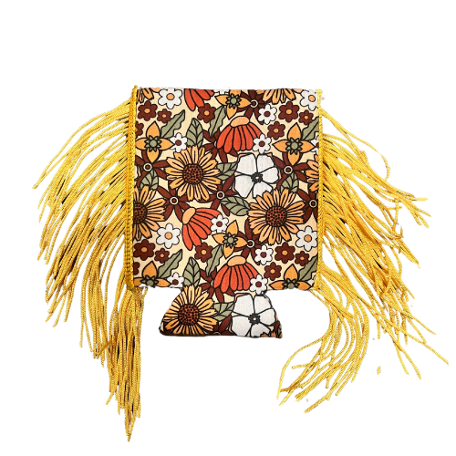 Mustard Yellow Fringe Flower Koozie
